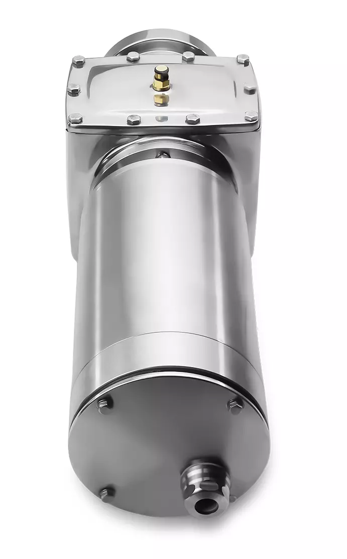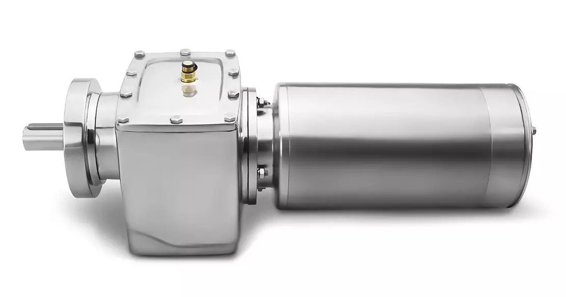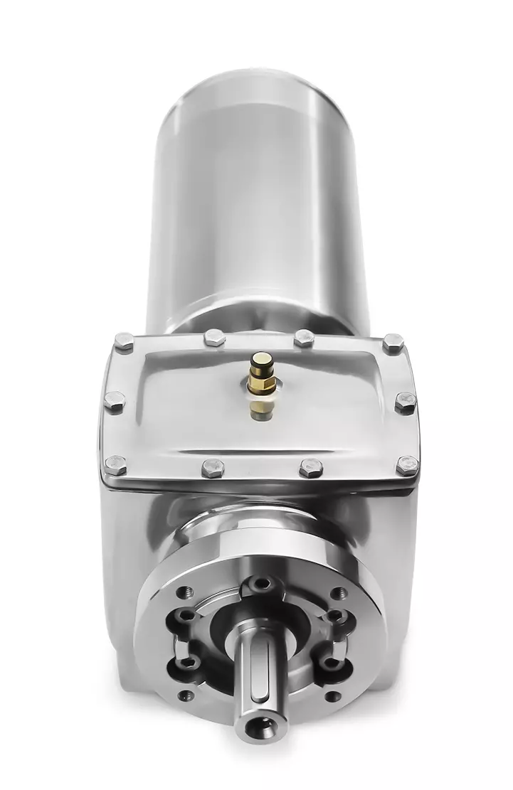 Przekładnia walcowa ze stali nierdzewnej może pracować w obu kierunkach obrotu i jest dostarczana z wypełnieniem olejem spożywczym.