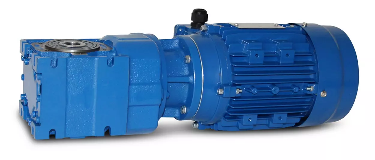 Motoreduktor stożkowy z kołnierzem IEC między przekładnią a silnikiem elektrycznym